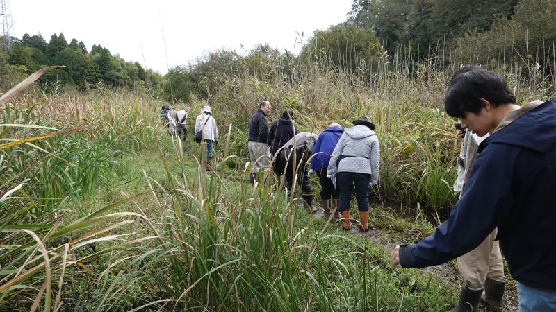 2024年11月2日に、東邦大生向けの谷津田自然観察会を行いました。あいにくの雨模様で足場の悪い中でしたが、男子3名女子3名の計6名の東邦大生が参加してくれました。田中正彦理事の解説のもと、捕まえたオケラを手で包んで、穴を掘る動きの力強さを感じたり、フユイチゴやヤマノイモのムカゴの味を楽しむなど、体験を 通して里山の生物多様性に触れ合ってもらいました。 4月に新理事に就任して初めて企画したイベントで、未熟さゆえに段取りが悪く、ご迷惑をおかけしてしまう ことが多々ありましたが、イベントの事前準備から事後を通して学びの多い、非常によい経験になりました。 谷津田の自然を案内する時に、どんなことを意識して解説をするのか。また、参加者が感じた声を聞いて今後 に生かすために、アンケートなどでフィードバックをもらうことが如何に大切で、またうれしいことなのかを 実感しました。 改めて、今回の東邦大谷津田自然観察会にご協力をいただいた田中正彦理事、ちば環境情報センターの皆様に 感謝を申し上げます。今後とも、先生方のご教授をいただき、学びと保全活動に尽力していきます。よろしくお願いします。 報告:東邦大学 理学部 生命圏環境科学科1年 鈴木郁也
