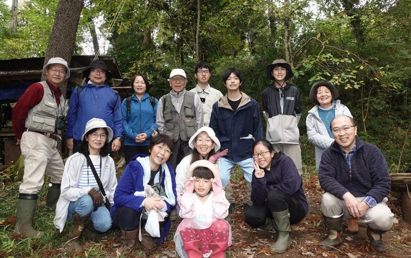 朝晩の気温が下がり、すっかり秋らしくなってきました。10月に雨が多かったせいか、森や道端にキノコが目立ちます。多くの動植物が次の世代に命を託すために卵や種子を残す季節です。アオジやジョウビタキなどの冬鳥も目にするようになりました。今回はキノコや動物を利用して種子を運ばせる「ひっつき虫」を中心に、深まりつつある秋の森と谷津の生きものたちを観察しました。 できたばかりの来年のカレンダー「下大和田谷津田ごよみ2026」を参加者に配布してから、谷津田を歩きました。タコノアシやガマの葉などが茶色く枯れ、深まりゆく秋を感じました。田んぼで最近数が少なくなったマルタニシを見つけ、オオタニシとの外見上の違いを観察しました。森に入るといたるところにキノコが傘を開いていて、地面から生えているのか木に付着しているか、傘の形や色など 16詳しく観察・記録しました。アラゲキクラゲを見つけて「家に持ち帰って食べよう」という方もいました。 フユイチゴがオレンジ色の実をつけていて皆で食べてみましたが、やはりまだ酸っぱいという感想が多かったようです。記念写真を撮影して、午前中で観察会を終了しました。 参加者18名(大人13名、大学生3名、高校生1名、小学生1名)