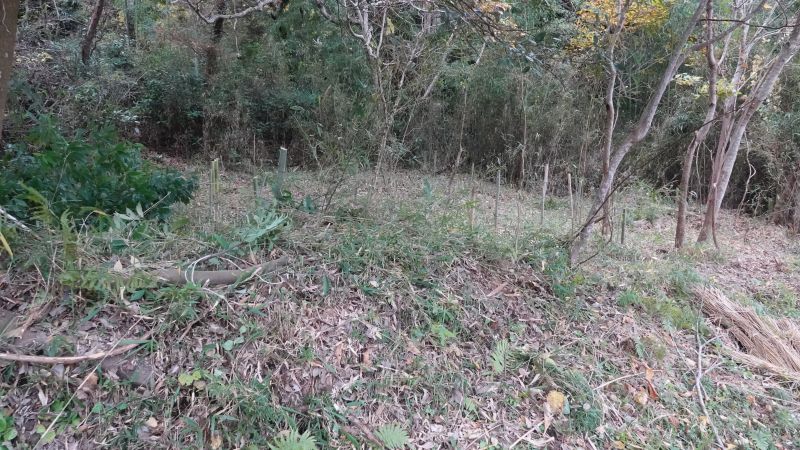 6日前の日曜日に下草刈りをしました。今日は、その後の続きの作業を行いました。動きやすい季節に、やれるだけのことをしておきたいものです。 枯れかかり倒木の危険がある木は、市が伐採することになりました。立ち入り禁止にした危険エリアを避けて、台地に上がれるように道筋を整えました。 以前、大規模に樹木が伐採された後、トモエソウが繁茂した場所がありますが、その後樹木がうっそうと生い茂り、林床に光が届きにくくなったため、トモエソウの群落は見られなくなってしまいました。今回はそのあたりの樹木を切り、つる植物などを取り除き日光が林床に届くようにしました。またトモエソウが生えてくることを期待します。 このような地味な作業は、一見つまらないと思われるかもしれませんが、やってみると結構、達成感があります。また、クモなどの小さな動物や勢いのある植物たちに囲まれて何とも言えない癒しを感じて、幸福感に満たされます。小さな生き物が一生懸命に生きている姿を見て、私も日々を大切に生きていきたいと思います。 午後は新しく造った台地上の畑に、玉ねぎの苗とニンニクを移植しました。 参加者9名(大人8名、幼児1名) 報告 高橋久美子