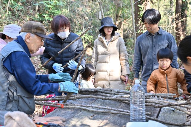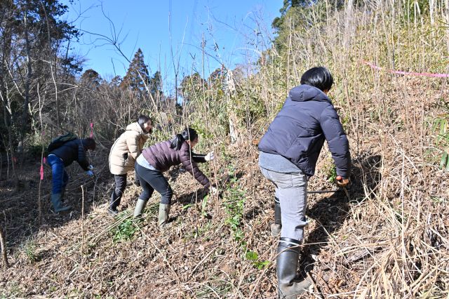 冬らしく晴れ渡り、気持ちのよい空のもと、先週に引き続き「リスが住みたくなる雑木林」を目指し、タラの木広場周辺で森の整備を行いました。 刈り払い機(2機)や切り鋏を使用し、過度に繁殖し、育成対象樹木の芽や幼木の生育を阻害しているヌルデやアカメガシワ、ササの下刈りを行うとともに、鋸を使って樹木の除伐を実施しました。これにより、リスの食料となるクルミや栗の芽、幼木に十分な日光が届く環境を整えることができました。 また、伐採したヌルデやアカメガシワは、子どもたちと一緒に運び、森の中の道の目印として活用しました。寒さの厳しい時期ではありますが、心地よい日差しのおかげで、森の中での作業はとても気持ちよく感じられました。 小学1年生と年少の子どもたちは、それぞれ 「自然観察会用に道を作った!」 「笹の葉が手袋にくっつくのが不思議だね」 などと話しながら、自分にできることを見つけ、新しい発見を重ねつつ、整備中の森の中で生き生きと活動していました。 帰宅後には、2年前に下大和田でキツネが確認された際のニュース映像(田中さんが取材を受けている様子)を家族で鑑賞しました。日頃お世話になっている方がテレビに映る姿を見て皆で盛り上がるとともに、子どもたちが本活動に良い刺激を受けていることを感じました。 キツネ動画の再生数から、多くの方に関心を持っていただいていることが分かり、谷津の重要性を広く認識していただくためには、継続的なモニタリングが重要であると実感しました。一方で、モニタリングにはデータ確認や機器設置などの負担が大きいことも伺っており、今後AI等の技術を活用した支援の可能性についても模索していきたいと考えています。 参加者12名(大人8名、大学生1名、小学生2名、幼児1名) 報告:石井健登