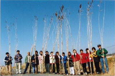 雲一つない青空のもと行われました。 当日は松ヶ丘中学校の生徒8名を含め3才〜64才までの参加者があり、最高4m85cmもあるヨシを100本余り刈り取りました。 このヨシを乾燥させて2月にヨシ笛を作ります。 今回ヨシ刈りに参加できなかった方も、あなたオリジナルのヨシ笛を作って、素朴な音色を沼を渡る風にのせて楽しみませんか? |