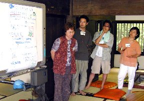 この研修会はさまざまな経験を持つ人が気軽に自由にじっくりと話し合えるのが特徴です。今年は産直の家という素敵な場所を借りて、夜のバーベキューの時に、縁側で、あるいは囲炉裏のまわりで皆さん、熱く語り合っていました。