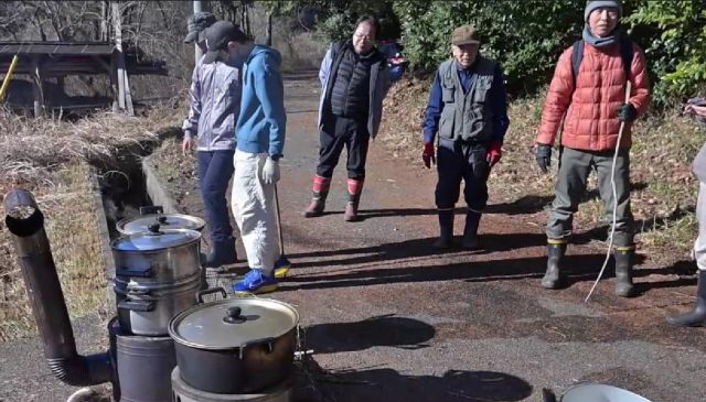 毎年、最初のイベントと言えばどんど焼きでしたが、昨年はお米つくりをしていないことから、今年はお餅つきだけにしました。場所も今までとは違い、東屋やブランコのある森の中。火をたく場所だけは安全管理上すぐ下の道路の上。コンパクトですが使い勝手の良いお餅つき会場になりました。 3つのかまどを用意。火をつけて湯を沸かしてもち米を蒸し、野菜たっぷりの味噌汁をつくりました。もち米は約4升を用意。2回に分けて蒸しあがる順にお餅つきをしました。食べ方はあんころ餅、きな粉餅、磯辺焼き、大根おろし、刻んだねぎの入った納豆、どれも美味しかったです。つきたてのお餅は良いものですね。野菜たっぷりのお味噌汁も大好評でした。野菜はたくさんのご寄付がありました、これもありがたかったです。 参加者30名(大人22名、大学生1名、高校生1名、小学生2名、幼児4名) 報告:平沼勝男