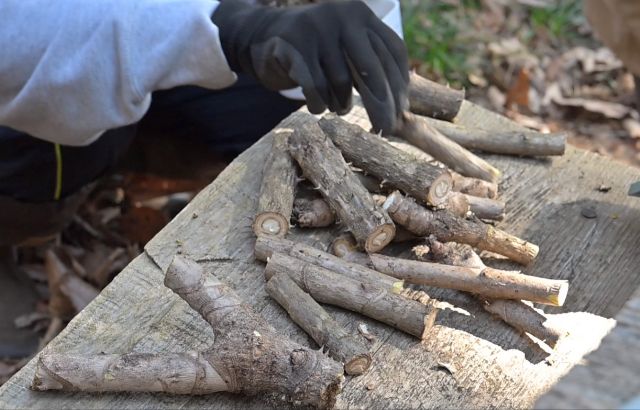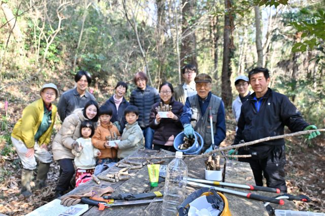 前回、キノコの植菌を行ったのは、2022年2月でした。今でも、そこからときどきシイタケが生えてきます。3年ぶりにまた植菌しようと計画しました。 市に枯れかけた樹木の伐採を依頼したので、切られた木を適当な長さに切り、ほだ木にすることにしました。ところが、伐採作業が遅れて、私たちの植菌作業が3月中旬になってしまいました。 ようやく、3月初旬に伐採されたコナラを、9日に水に浸けました。コナラがシイタケのほだ木になります。電気ドリルで穴をあけて種菌を埋め込みます。今回の種菌は、前回のものより大きく、木槌を使う必要がなく、指で押し込むタイプでした。穴あけの作業は、電気ドリルの充電が切れたり、危険もともない、注意が必要でしたが、種菌を植えるのは楽しい作業でした。小さな子どもたちも、喜んで参加しました。早ければ今年中にシイタケが生えるそうです。食べるのが、今から待ち遠しいですね。 参加者14名(大人10名、大学生1名、小学生1名、幼児2名) 報告:高橋久美子