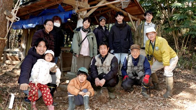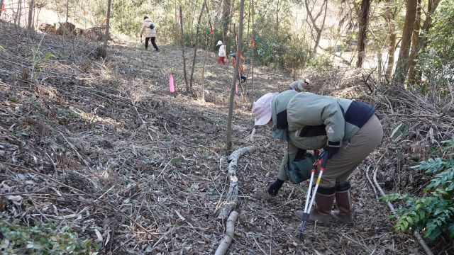 冬らしく晴れ渡り、気持ちのよい空のもと、先週に引き続き「リスが住みたくなる雑木林」を目指し、タラの木広場周辺で森の整備を行いました。 刈り払い機(2機)や切り鋏を使用し、過度に繁殖し、育成対象樹木の芽や幼木の生育を阻害しているヌルデやアカメガシワ、ササの下刈りを行うとともに、鋸を使って樹木の除伐を実施しました。これにより、リスの食料となるクルミや栗の芽、幼木に十分な日光が届く環境を整えることができました。 また、伐採したヌルデやアカメガシワは、子どもたちと一緒に運び、森の中の道の目印として活用しました。寒さの厳しい時期ではありますが、心地よい日差しのおかげで、森の中での作業はとても気持ちよく感じられました。 小学1年生と年少の子どもたちは、それぞれ 「自然観察会用に道を作った!」 「笹の葉が手袋にくっつくのが不思議だね」 などと話しながら、自分にできることを見つけ、新しい発見を重ねつつ、整備中の森の中で生き生きと活動していました。 帰宅後には、2年前に下大和田でキツネが確認された際のニュース映像(田中さんが取材を受けている様子)を家族で鑑賞しました。日頃お世話になっている方がテレビに映る姿を見て皆で盛り上がるとともに、子どもたちが本活動に良い刺激を受けていることを感じました。 キツネ動画の再生数から、多くの方に関心を持っていただいていることが分かり、谷津の重要性を広く認識していただくためには、継続的なモニタリングが重要であると実感しました。一方で、モニタリングにはデータ確認や機器設置などの負担が大きいことも伺っており、今後AI等の技術を活用した支援の可能性についても模索していきたいと考えています。 参加者12名(大人8名、大学生1名、小学生2名、幼児1名) 報告:石井健登
